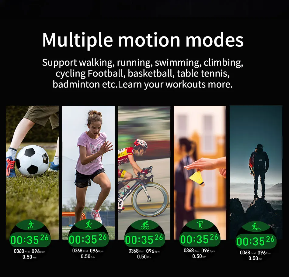 Software functionReceive/Reject phone calls/ Dial phone call,Heart rate monitoring,Blood/Blood oxygen pressure monitoring,Sleep monitoring,Sedentary reminder,ports pedometer/calorie consumption/track record/exercise time,Call reminder and display,Message is pushed and displayed,Remote control camera,Automatically heart rate measurement,Multi-Sport,measurement,Clock reminder,Alarm reminder,5 kinds of dials default. APP customized watch faces are optional.