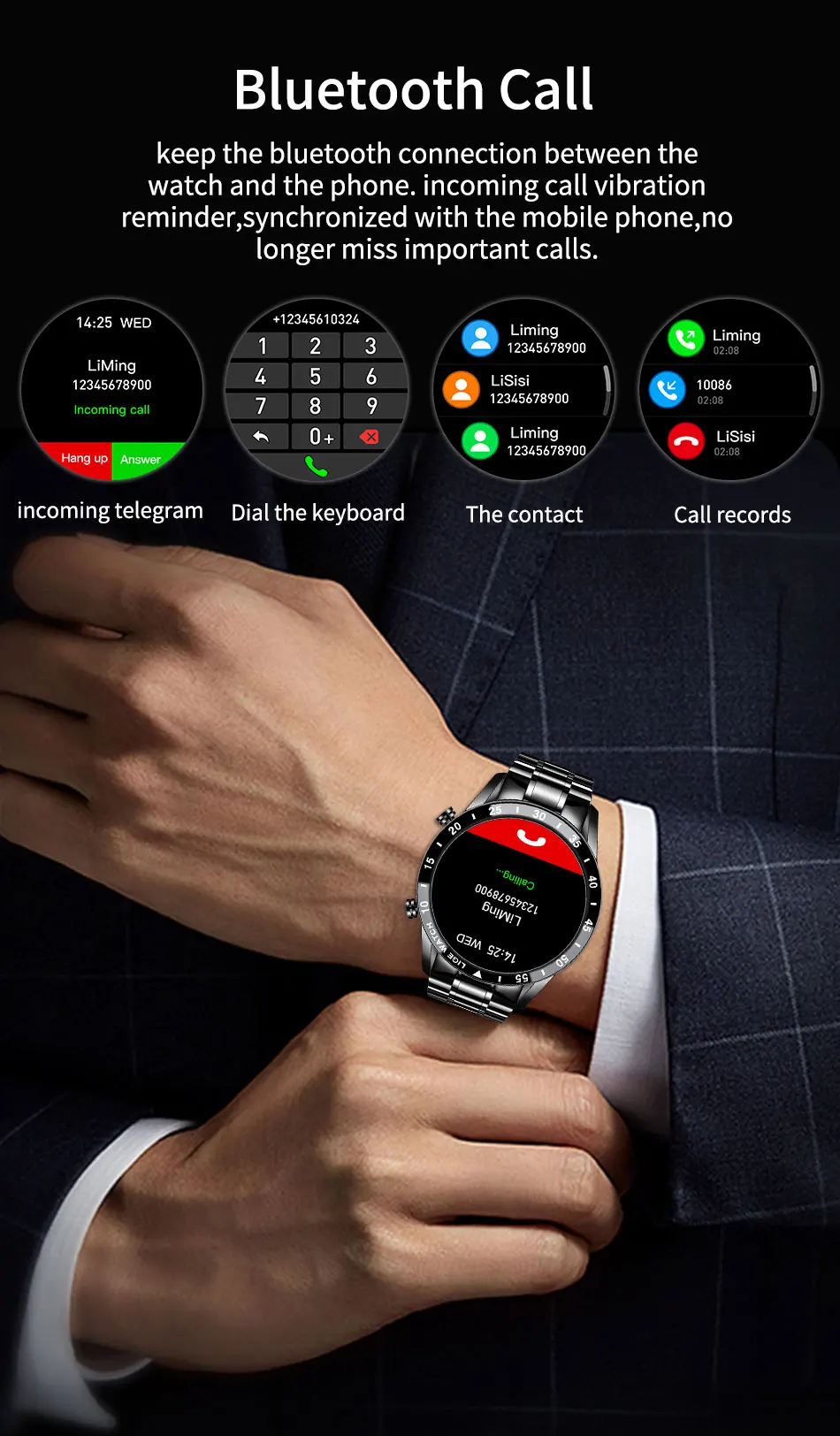LIGE 2022 tela de toque de círculo completo pulseira de aço Bluetooth de luxo